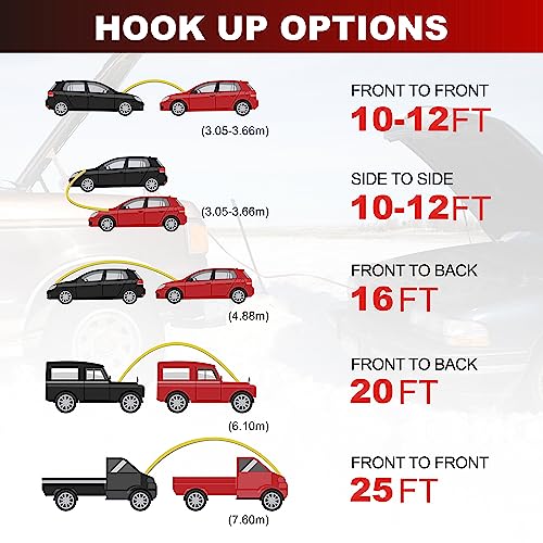 - AWELTEC 25 Foot length makes it easy to reach from one car battery to another, Unique Design clamps suitable for various cars and connection ways.