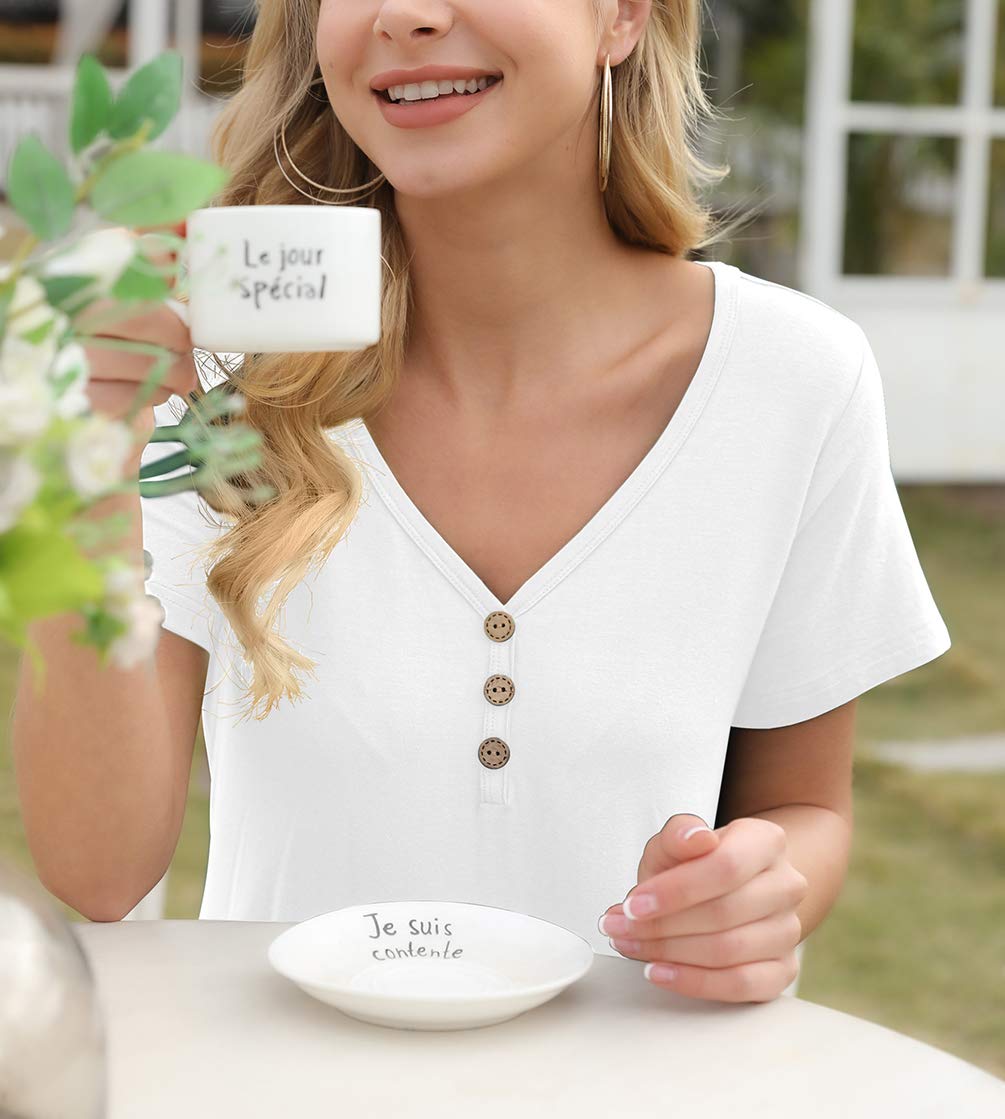 - Fashion-Simple Design: Fit flare design and button front (Button Closure)design make you look cute, slimmer & fashion. This summer tunics have enough length also, nice coverage in hem ornament the belly and bottom area. Also the style is very flattering to most body types.