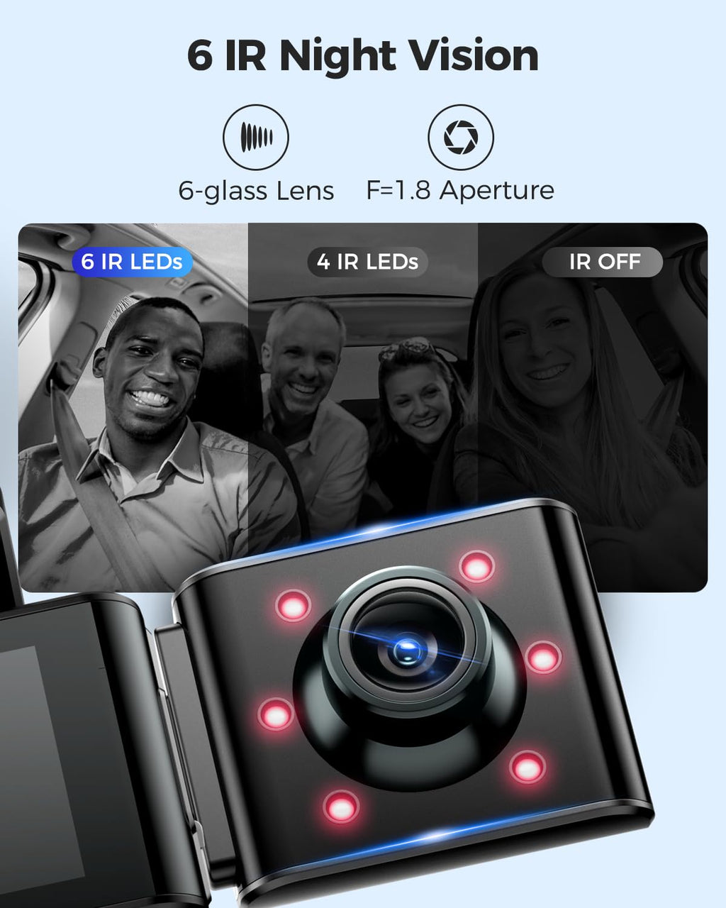 - IR Night Vision: M550 Pro dashcam is equipped with Novatek 8629G Processor, SC401AI, GC2053 and SC223A sensor to provides super night vision. Night vision dash cam could clearly record day and night evironment.