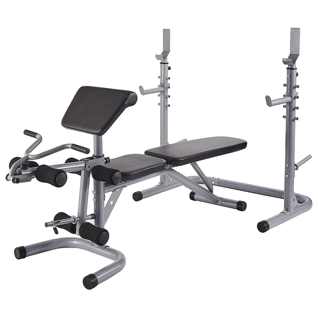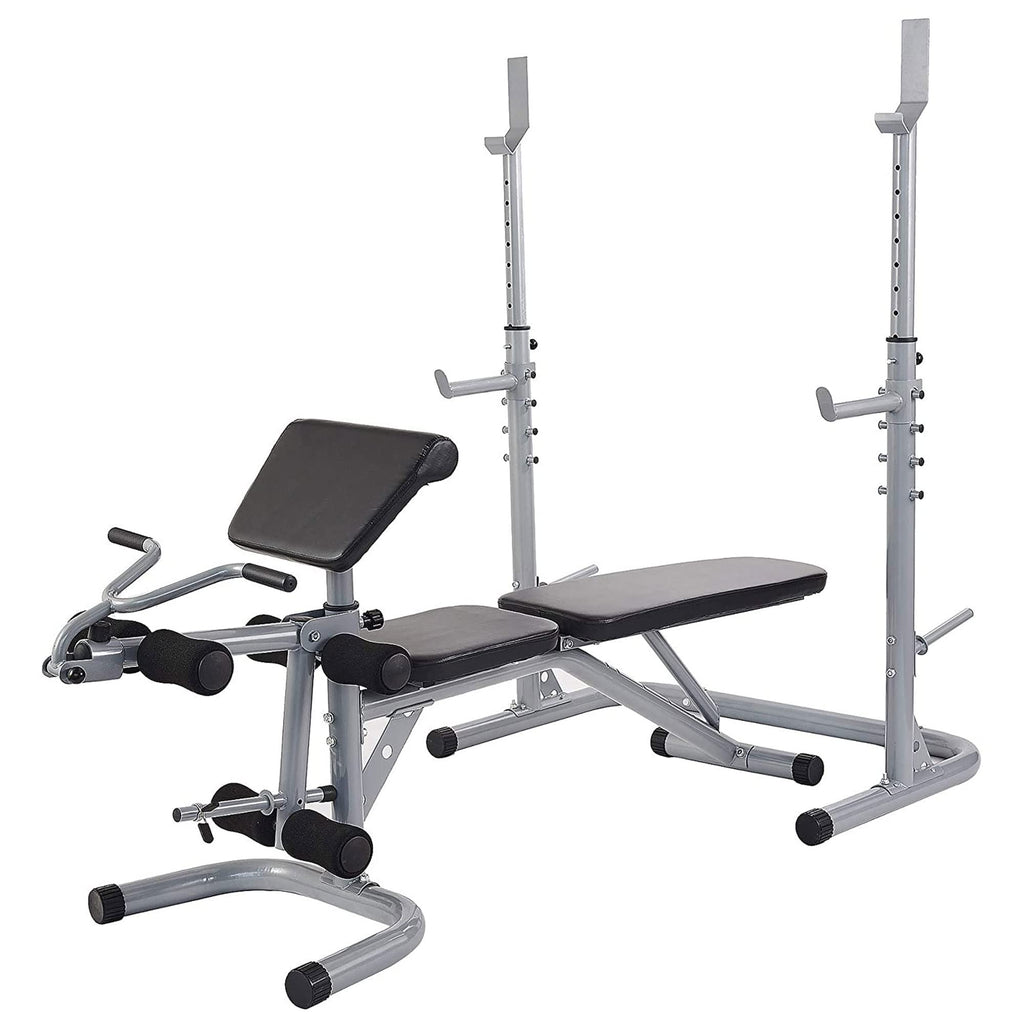 Details: BalanceFrom RS 60 Multifunctional Workout Station Adjustable Olympic Workout Bench with Squat Rack, Leg Extension, Preacher Curl, and Weight Storage, 800-Pound Capacity.