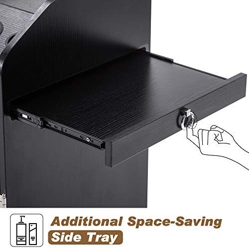 - 【Additional Space-Saving Side Tray】In addition to 4 drawers and 3 holes, we have a very space-saving and compact storage design, that is, the side tray in the cart that can slide in and out. It does not take up space when not in use, and provides a extension storage space when needed, which is convenient for your work.