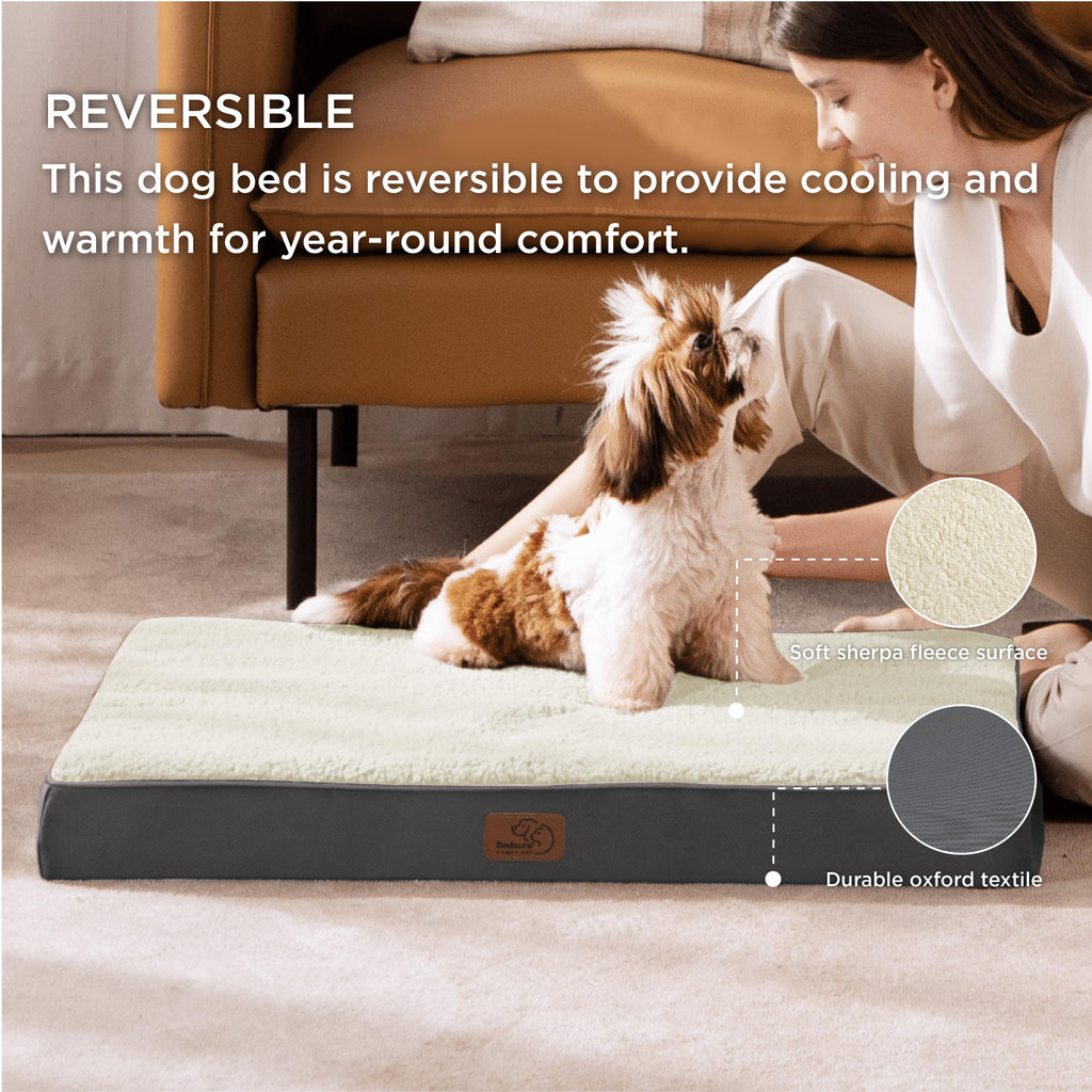 - All-Seasons Bed: The two-sided design features warm and cozy sherpa with a reverse side of cool and soft Oxford fabric. Durable and suitable for all-season use¡ªkeep your dog cool in summer and warm in winter for increased comfort.