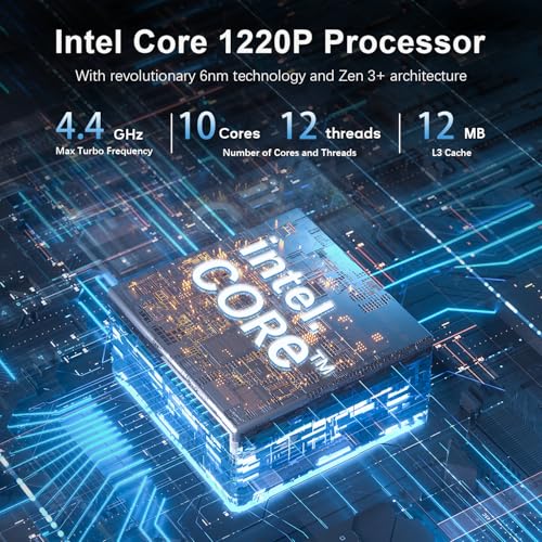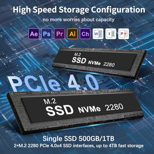 - 【16GB DDR4 and 500GB SSD】The 1220P mini computer is equipped with 16GB (8GB*2) DDR4 RAM 3200MHz (can be expanded up to 64GB MAX with 2 available memory slots).Installed with 500GB M.2 PCIe 4.0*4 2280 SSD and support dual-channel M.2 PCIe 4.0*4 up to max 4TB(2*2TB,not included).Large capacity enables you to store and access large files,applications,multimedia content effortlessly and save more favorite documents or movies.