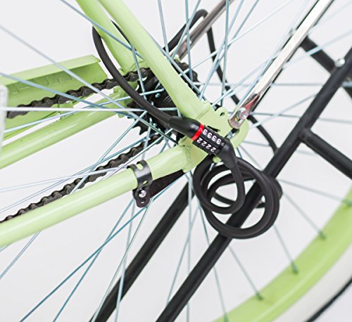 Details: 5 ft. x 8mm steel cable for low to medium crime areas and quick stop situations - 4-digit preset combination