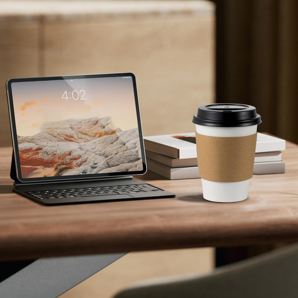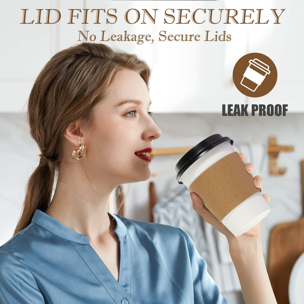 - All In One Set - It includes 100 pack 12 oz disposable coffee cups with lids and sleeves. Get all of it together with a great value. Great set of 12 oz disposable cups with lids for taking your drink on the go