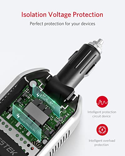 - Multi Protection: built-in cooling fan and auto-shutdown keep your devices and car from overheating, overloading, low load, short circuit, low voltage and over voltage