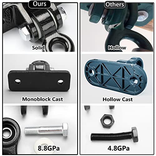 - High Quality: One-piece Iron Casting is heavy duty and superior quality, maximum load of 2400 Lbs. Perfect choice for all kinds of swing set products indoors & outdoors, including gymnastics rings ceiling mounts, porch swings and yoga swings