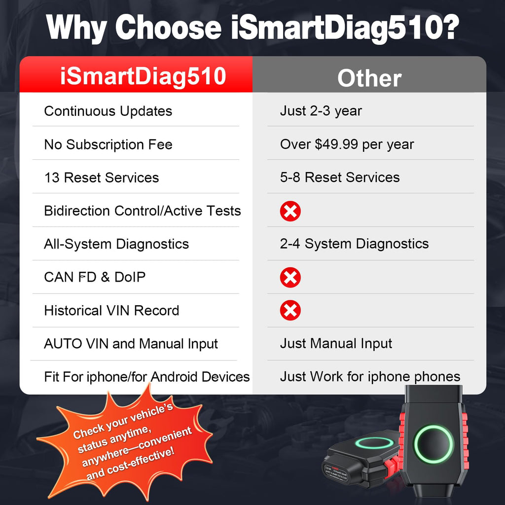 - NO Hidden Fees, Continuous Updates: NO Software Subscription. NO APP Subscription. Unlike other OBD2 scanner diagnostic tools that use third-party apps, the iSmartDiag app costs nothing and provides unlimited access to all equipped functions without additional fees. Vident consistently optimizes and enhances performance, ensuring you always have the most advanced tools. One purchase, continuous updates, saving you long-term costs. One click updates make the process easy. All new features and improvements are automatically pushed to your device, allowing you to focus on using the product seamlessly
