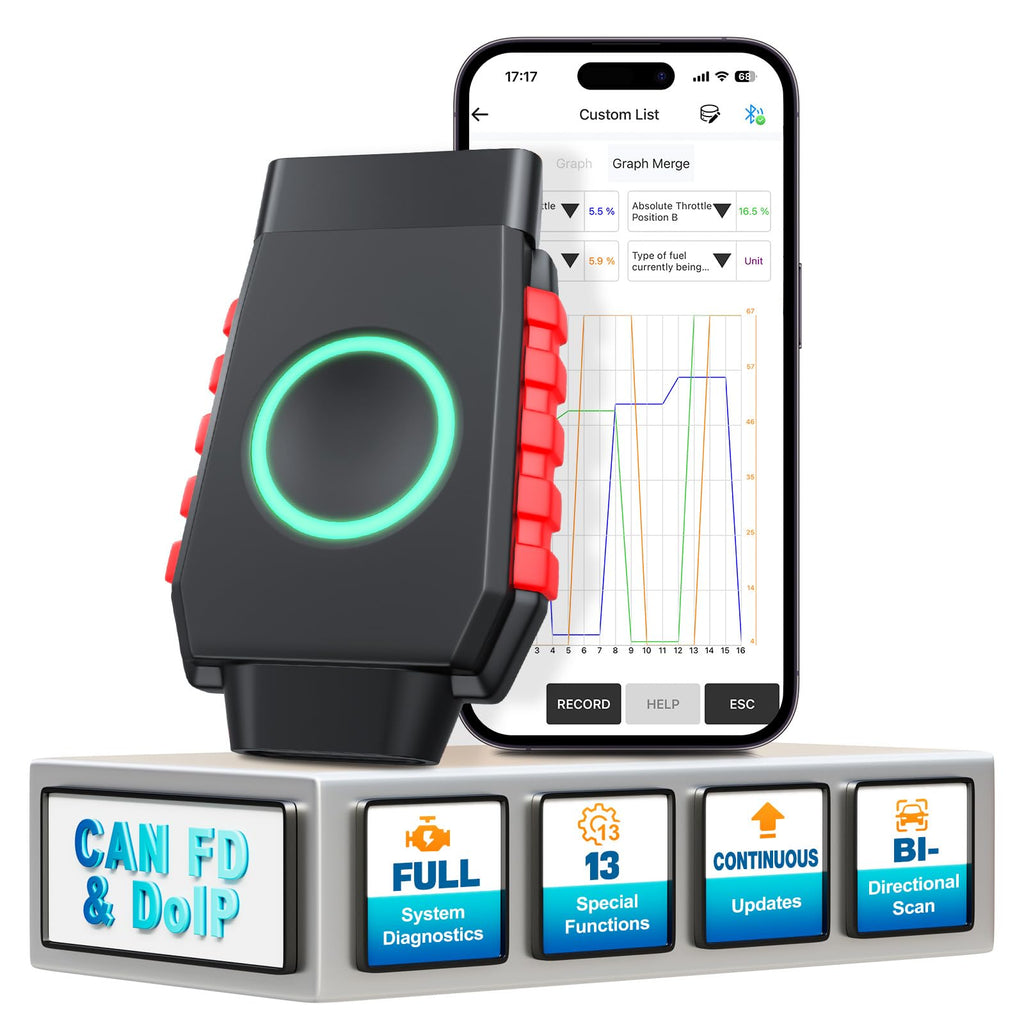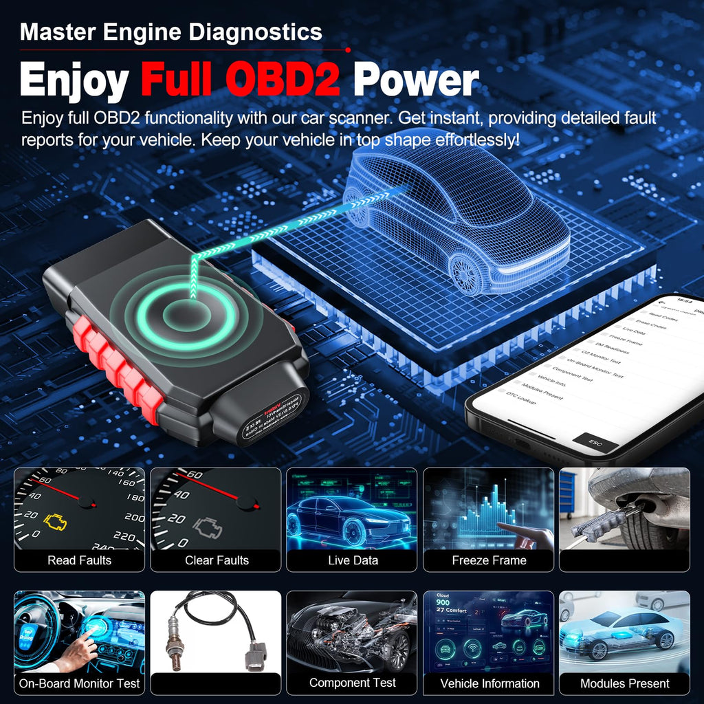 - Full Bidirectional Scan/Over 3000 Active Tests: The bidirectional obd2 scanner allows you to send commands to your vehicle's ECU directly from your smartphone to perform a variety of active tests to check its working status, such as fuel pump, solenoids, sunroof, mirrors, headlights, wipers, etc. This feature accelerates issue identification, reducing diagnostic time for mechanics. Experience enhanced convenience and safety as you swiftly narrow down problems and optimize vehicle performance