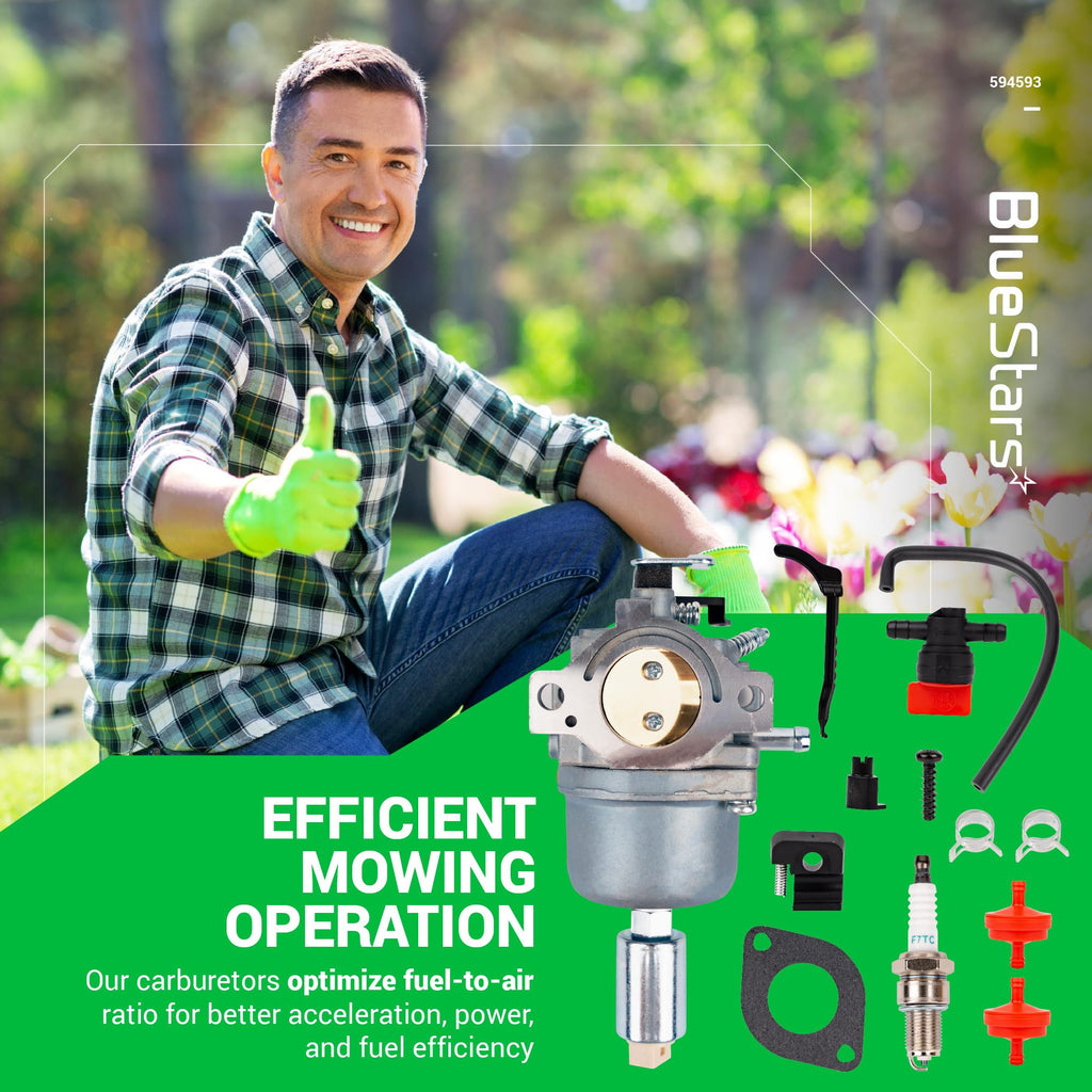 - SUPERIOR MATERIAL: The carburetor is crafted from a lightweight and robust aluminum alloy that offers exceptional resistance to corrosion and a favorable strength-to-weight ratio. This material is a popular choice for constructing carburetors, allowing them to be both durable and effective in blending air and fuel for internal combustion engines. This convenient kit boosts your engine and helps you maintain your lawnmower at peak performance