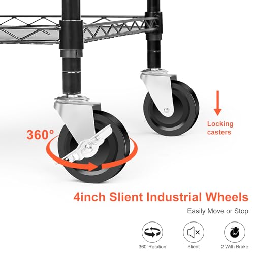 - UTILITY CARTS With 360° SILENT CASTERS: The 3 tier metal utility cart are equipped with 4” silent industrial casters make it can transports heavy loads swiftly and smoothly, 4 casters include 2 fixed locks casters that can be fixed or moved at any time for your needs.