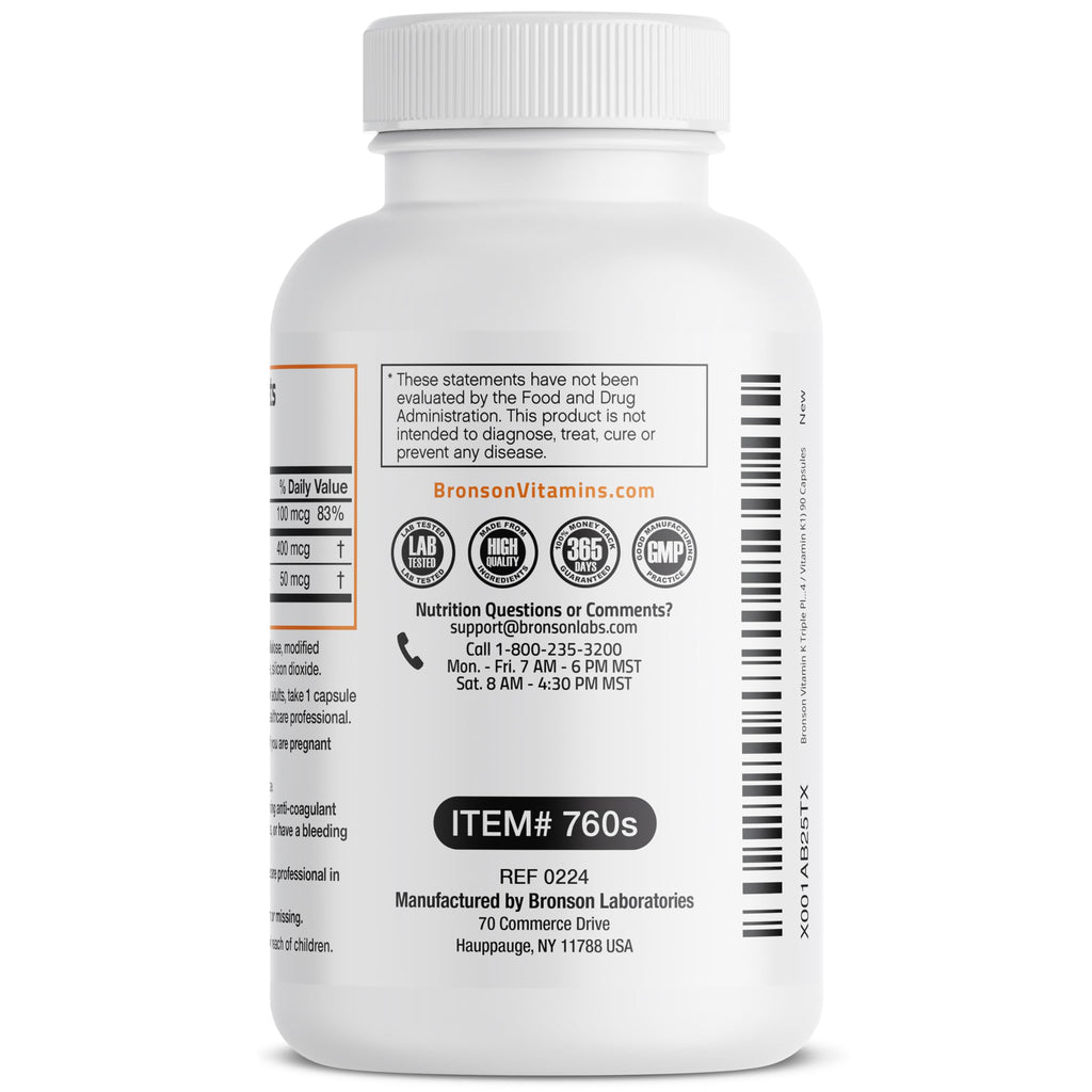 - Triple The Support Complex: Provides both Vitamin K1 and two forms of Vitamin K2, Vitamin K2 MK4 (Menatetrenone-4) and Vitamin K2 MK7 (Menaquinone-7).