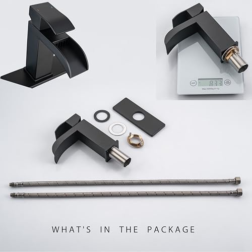- đăStrong CompatibilityăSingle-hole bathroom faucet cold and hot single-handle design, which can easily control the temperature and water flow, and the high-quality valve core is suitable for long-term daily use. Also, provide a deck plate for 1 or 3- hole installation. The waterfall simple style is perfect for your bathroom.