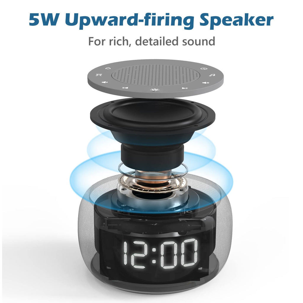 - 2-in-1: Designed with sound machine and alarm clock in one integrated machine. Helps block disruptive environmental noises in high quality 5W drivers and precise 30-level volume control, so you can fall asleep with ease.