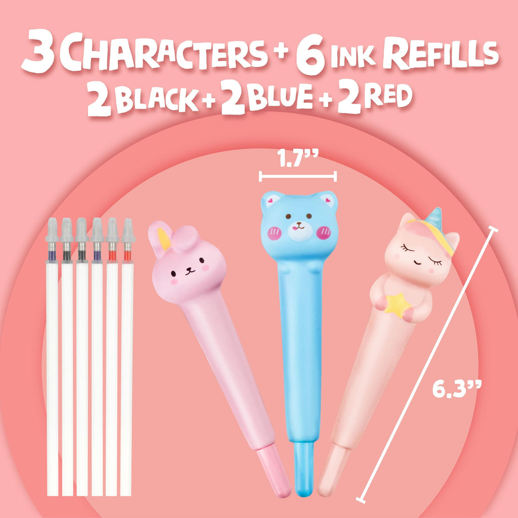 Details: Discover the ultimate sensory experience with our bundled set of the Liquid Motion Bubbler and Squishy Pens from BunMo. The Liquid Motion Bubbler, encased in a durable, soft silicone with unique textures, captivates with its mesmerizing pink and blue liquid, introducing children to the wonders of physics and fluid dynamics. Paired with our adorable Squishy Pens, featuring charming characters and a plush, squeezable design, this set offers a perfect combination of educational fun and stress relief. Each pen includes 6 ink refills and provides a smooth writing experience, making it ideal for hours of doodling and drawing. Trust BunMo, the leading brand in sensory toys, to deliver high-quality, safe, and delightful products for all ages, beautifully packaged for gifting.