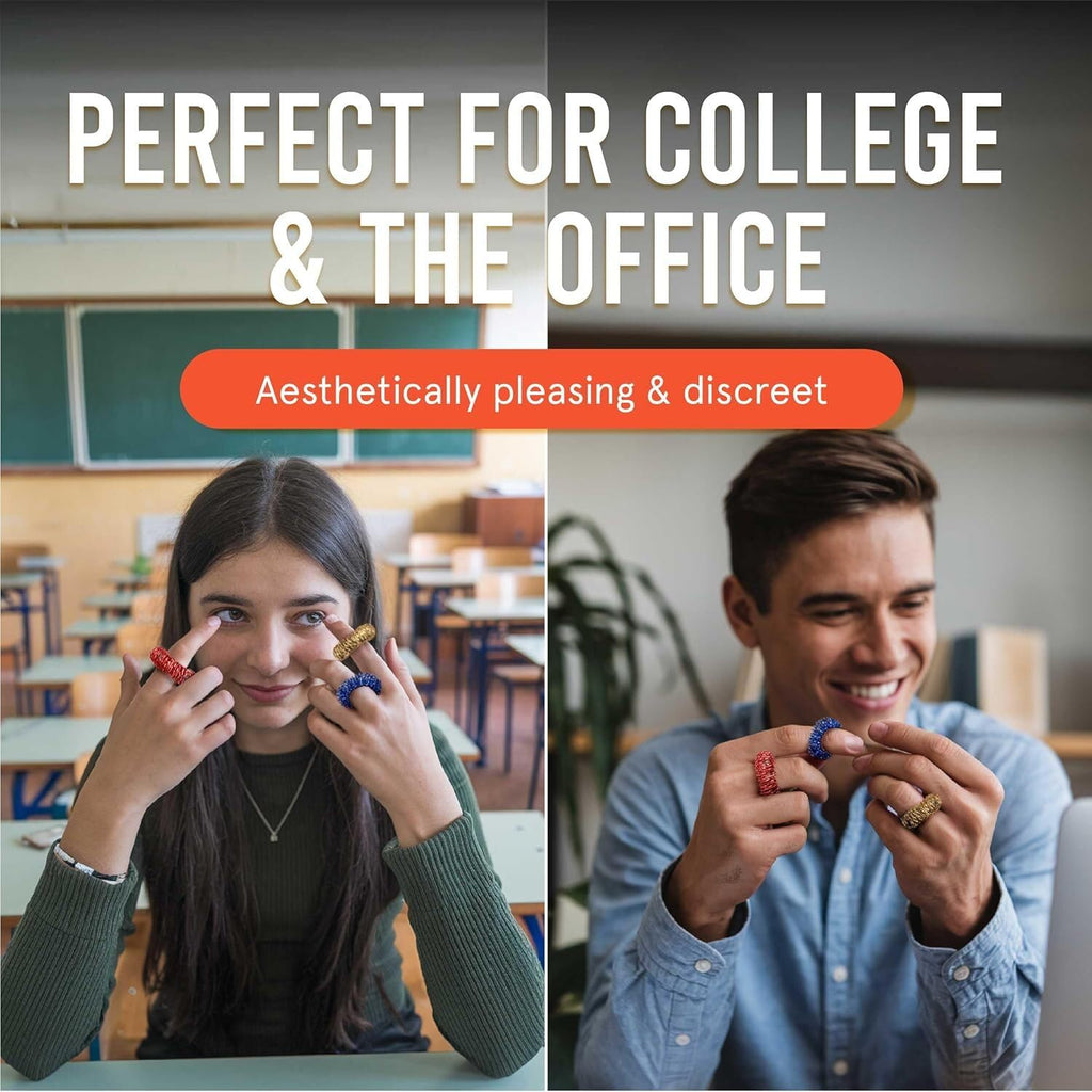 - Multi Use spiky sensory rings - These sensory rings for adults feature a unique spiky texture designed to provide gentle stimulation to your fingers. Ideal for individuals who seek a simple, natural way to experience tactile feedback, the rings also offer tired fingers a break - perfect after long periods of typing, writing, mouse or phone use.