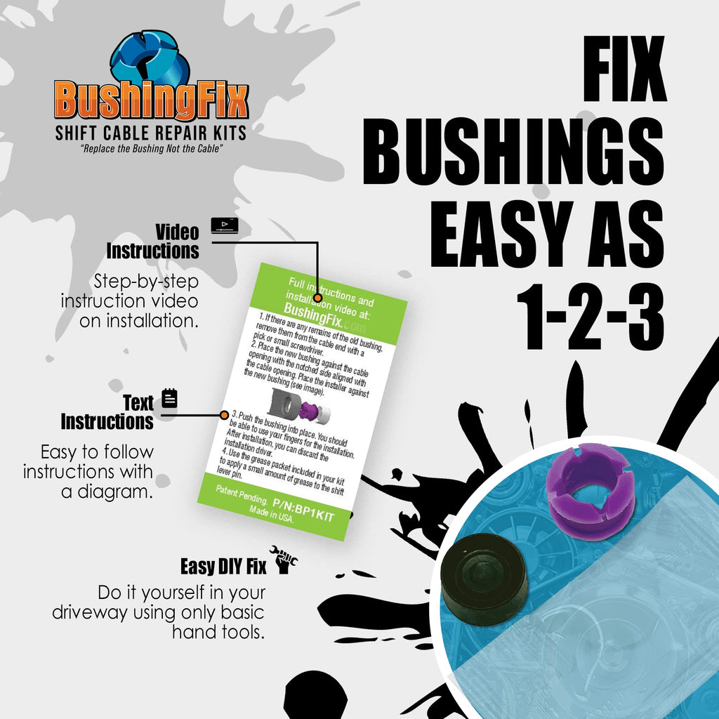 - EASY TO INSTALL: Our shift linkage bushing repair kit is so simple to use, you can repair and replace your shift cable bushing in minutes. Our kit has everything you need to get the job done quickly, easily, and without the cost of having to replace the entire transmission cable! Our kit includes text and video instructions along with reliable tech support to make the installation even easier.