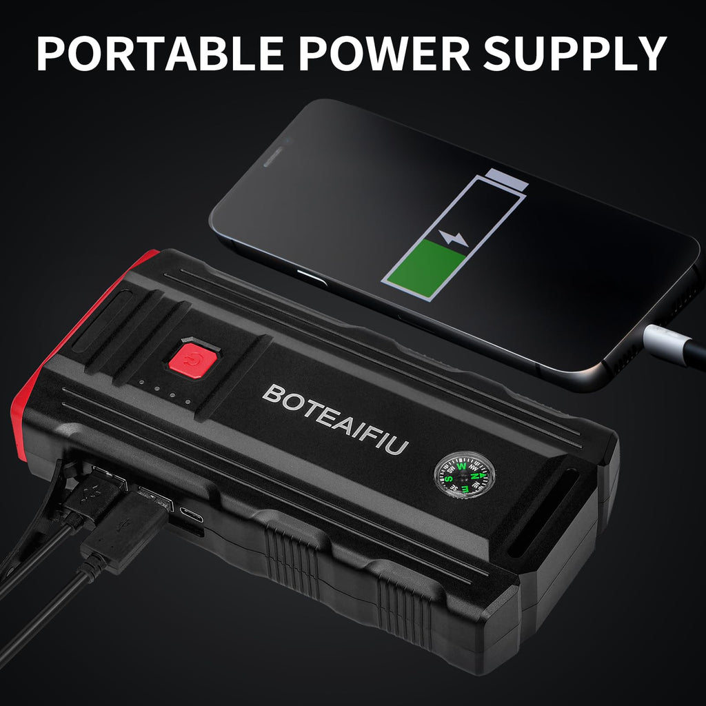 - 🚗【Waterproof Design】That are effectively waterproof and can be used safely in rainy environments. You can then use it to start your car with confidence!Package Contents:Package includes:1*car starter, 1*smart starter cable, 1*USB C cable