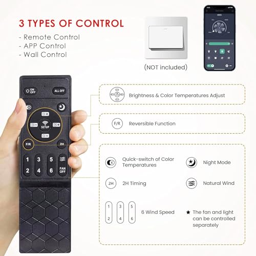 - ✅【Ceiling Fans with Lights】: Our Ceiling Fans with Lights come with both remote control and APP control, allowing you to effortlessly adjust the fan speed, dim the lights, and even set a 2-hour timing off. Experience the convenience of modern technology at your fingertips.