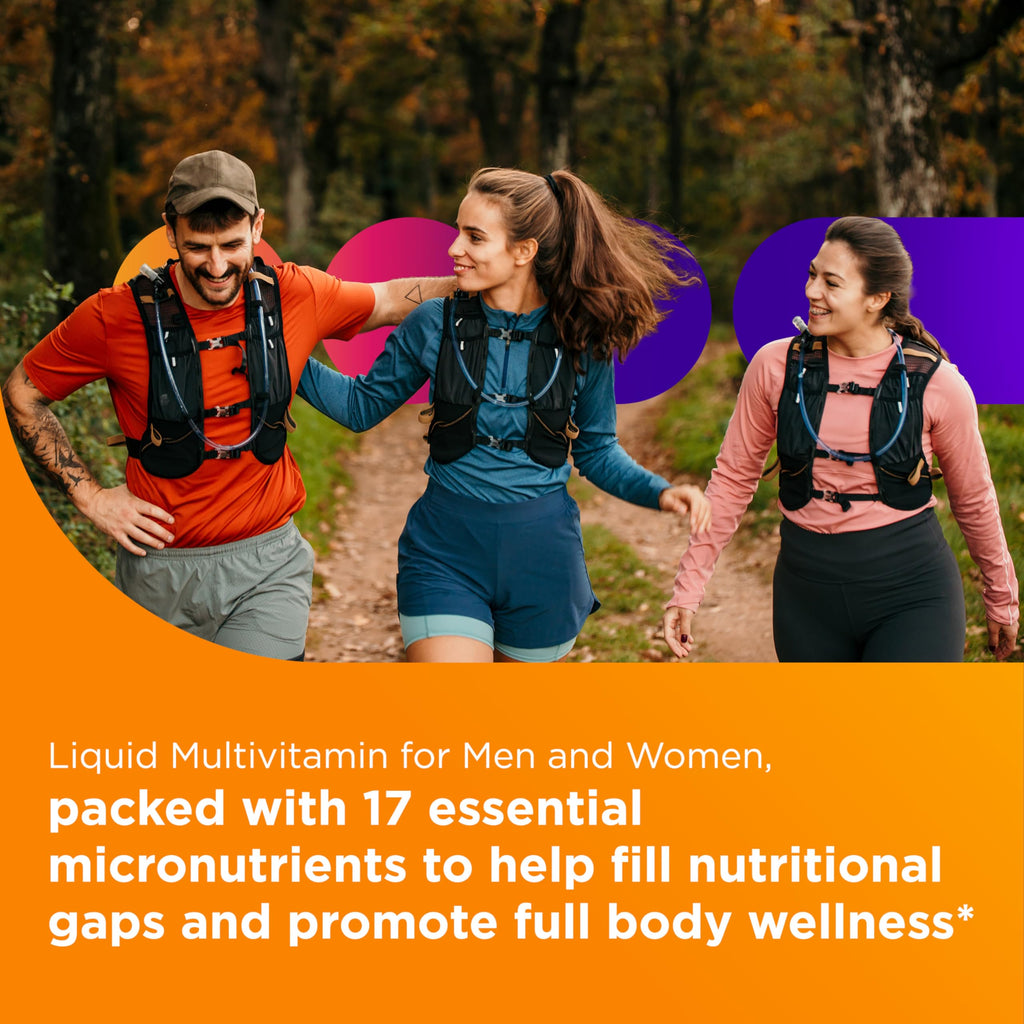 - Liquid multivitamin for men and women, packed with 17 essential micronutrients to help fill nutritional gaps and promote full body wellness
