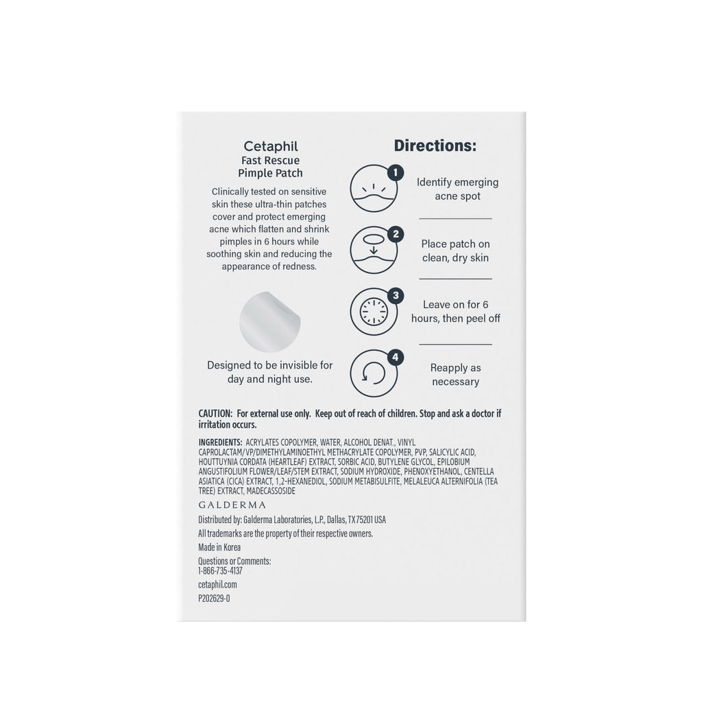 - CETAPHIL ACNE FAST RESCUE PIMPLE PATCH: Designed to target emerging acne spots and provide visible results in 6 hours