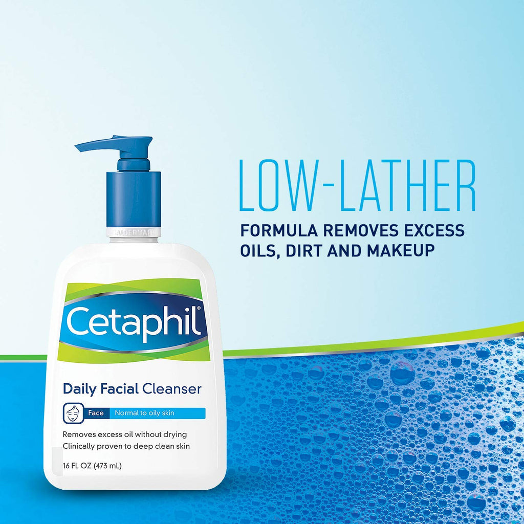 Details: Cetaphil Daily Facial Cleanser, 16 fl oz, is designed for normal to oily skin types. The formula gently removes dirt, oil, and impurities without stripping the skin of its natural moisture. It rinses clean without leaving behind residue, making it suitable for everyday use. Packaged in a 16 fl oz pump bottle, this cleanser is convenient for both home and travel