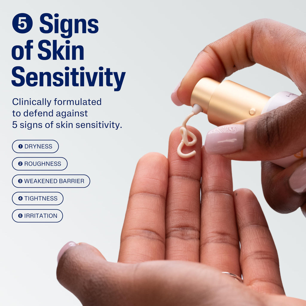 - DEFENDS AGAINST 5 SIGNS OF SKIN SENSITIVITY: Dryness, irritation, roughness, tightness and a weakened skin barrier