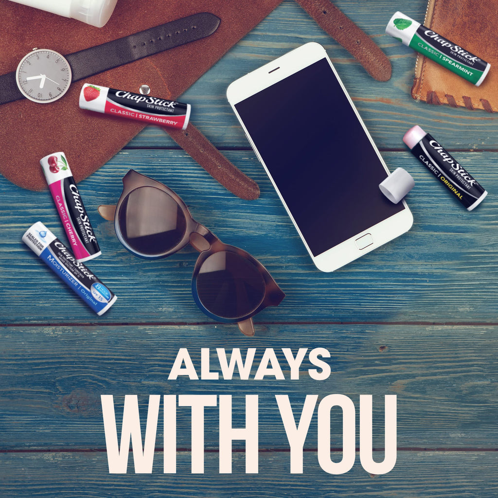 - Pack includes: ChapStick Original, Strawberry ChapStick, Spearmint, ChapStick Moisturizer Original with SPF 15, and Cherry lip balm tubes