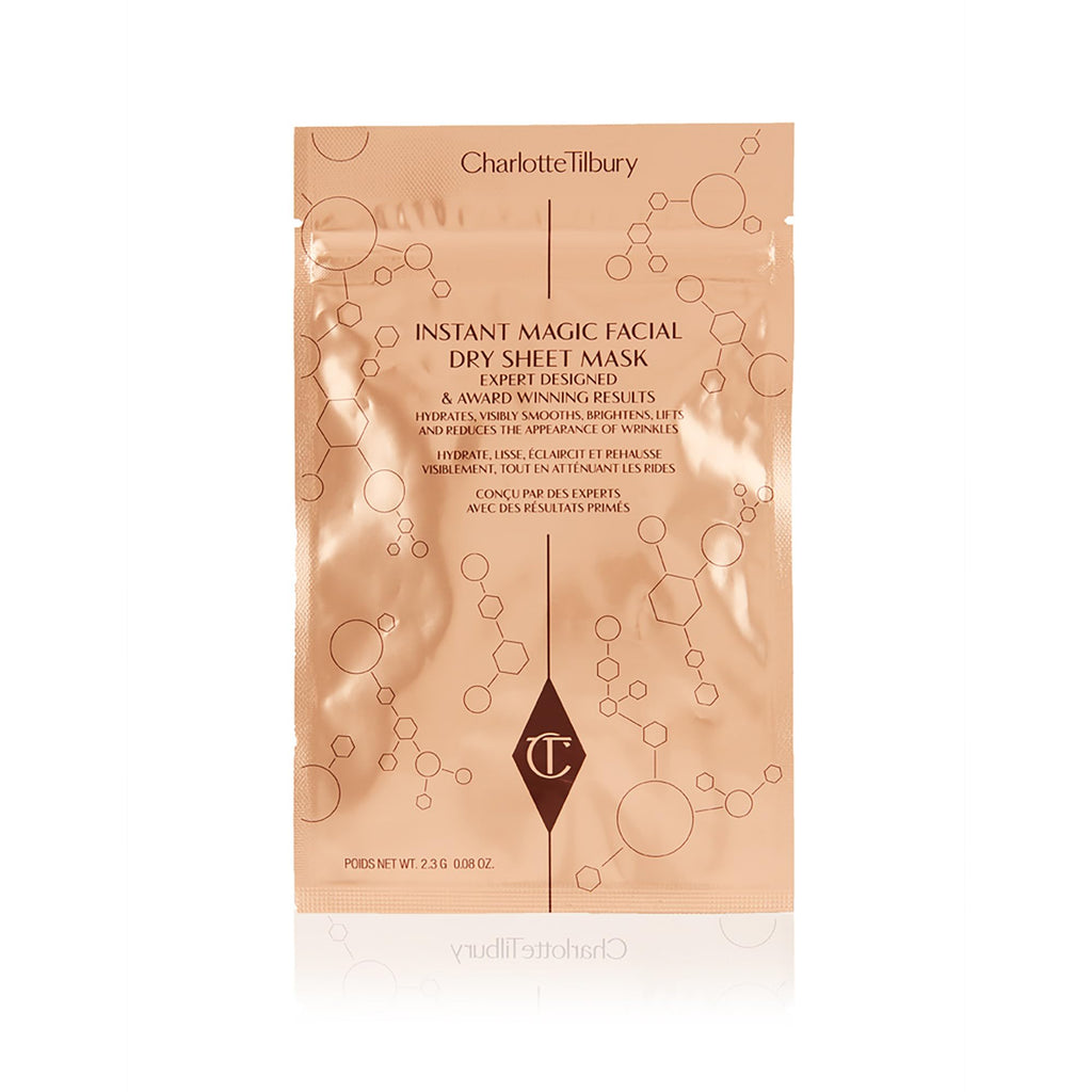Details: Darlings, unlock facialist results in 15 minutes! My multi-award-winning Instant Magic Facial Dry Sheet Mask is like nothing you have tried before! It can be used up to 3 times and hydrates, visibly smooths, brightens and reduces the appearance of wrinkles for a dewy, plumper-looking complexion! Inspired by the technical innovations of Korean beauty and infused with supercharged ingredients, including vitamins, floral extracts, peptides and oils, it’s the secret to red carpet-ready glowing, hydrated and plumper-looking skin! The textile fabric has been infused with tiny vectors of ingredients, from vitamins and floral extracts to peptides and oils. The biomimetic revolutionary system gives a prolonged release of the ingredients, giving it time to immerse into your complexion while staying dry!