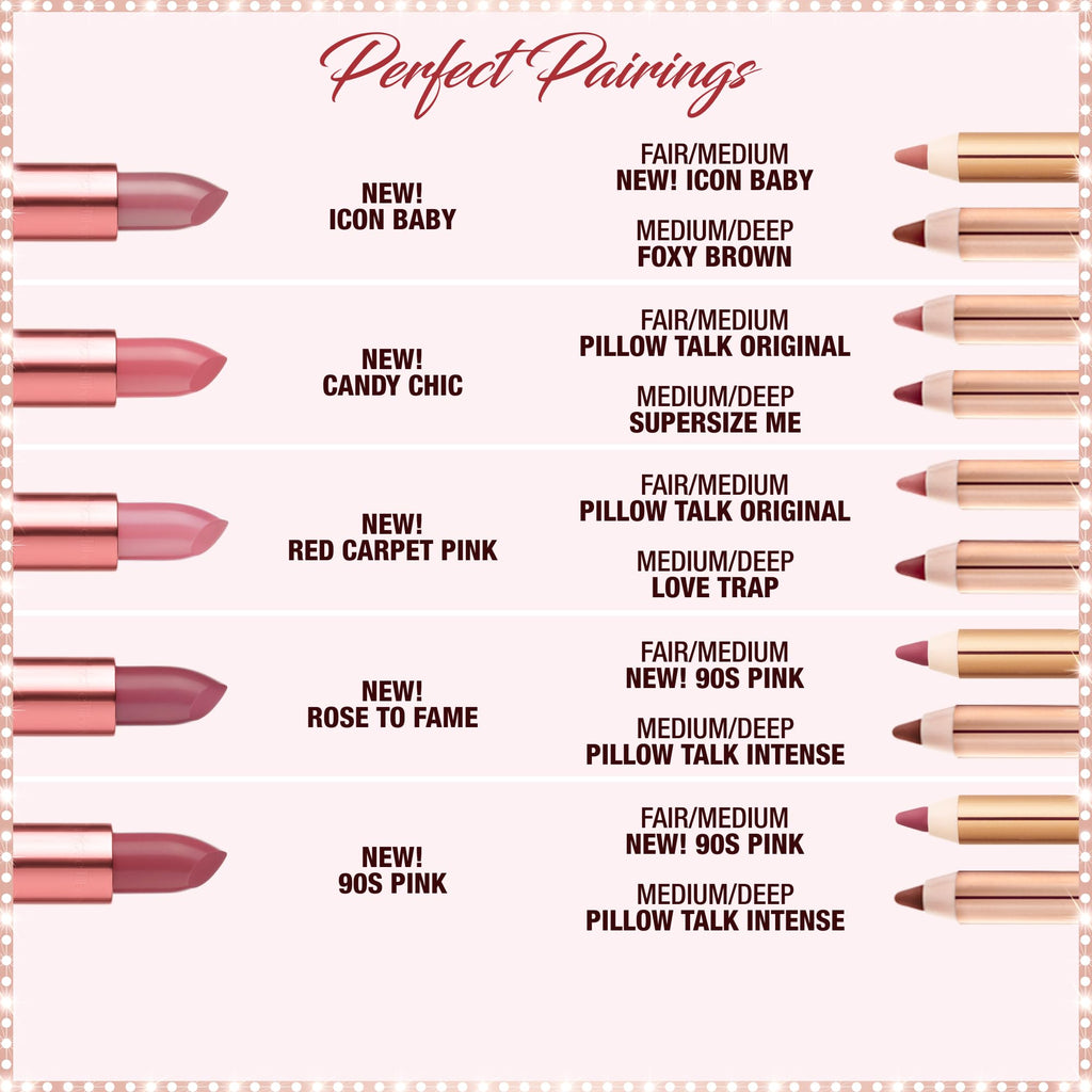 - Iconic Nude-Pink Lip Liner - Create the illusion of fuller, more defined lips with Charlotte’s universally flattering nude-pink lip liners that match the natural undertones of your lips for a dreamy, perfected pout.