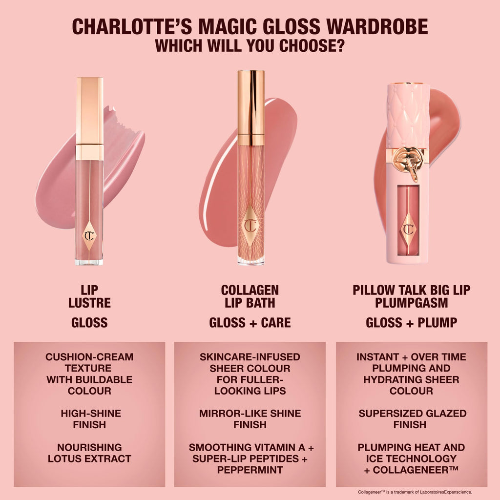 Details: Darlings, discover my Pillow Talk Big Lip Plumpgasm, a lip-plumping lip gloss to supersize + maximise! Just pump, plump + pout for big lips, wow! Lips look 93% plumper instantly!* Plumps the look of natural lips by 25% in 2 weeks!** Available in 2 universally-flattering shades! Fair/medium is a pink nude and medium/deep is a brown berry-pink! Glide on and feel the sensation of Plumpgasm work its magic, giving you fullness from the first touch! It’s my lip-amplifying secret for a juicy, plumped up pout in seconds! And darlings, the plumping effect does not stop there! The more you wear it, the more your natural lips look plumper + smoother! Enriched with plumpgasm heat + ice technology, plump-effect collageneer* and hydrating hyaluronic acid, the formula combines the hydrating comfort of a balm + the amplifying power of a lip plumper with the beautifying pretty pink pillow talk effect so your lips look plumper + smoother! One pillow talk product sold every 2 seconds!* **tested on 30 people. **tested on 33 people with twice daily application ***market rankings based on circana npd prestige beauty data fy 2023 value sales *Collageneer, is a trademark of laboratories expanscience