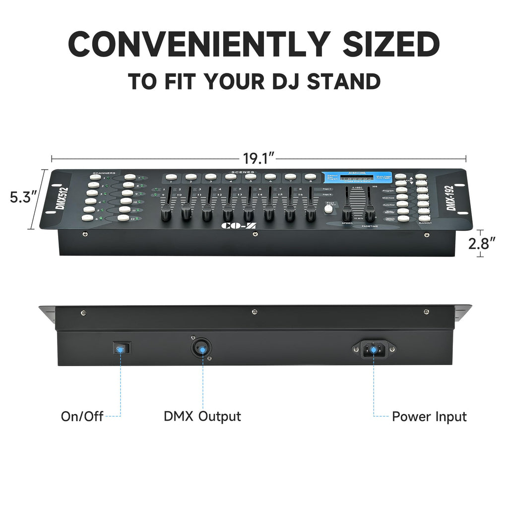 - Add More Energy to Your Shows: With 192 groups of channels, it controls up to 12 intelligent lights of up to 16 channels each, it is also able to control up to 12 fixtures and up to 240 scenes, enabling you to set up complex shows