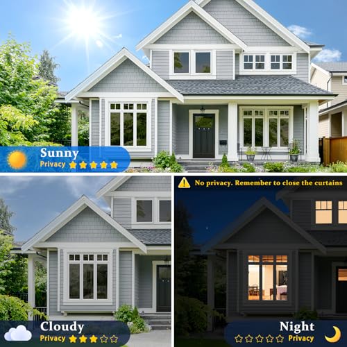 - Daytime One Way Mirror Window Film--The light is stronger during the day, and the glass outside shows the mirror effect. When the external light is weakened, the mirror effect of the external glass gradually disappears, and people outside can see the inside. Remember to close the curtains at night.