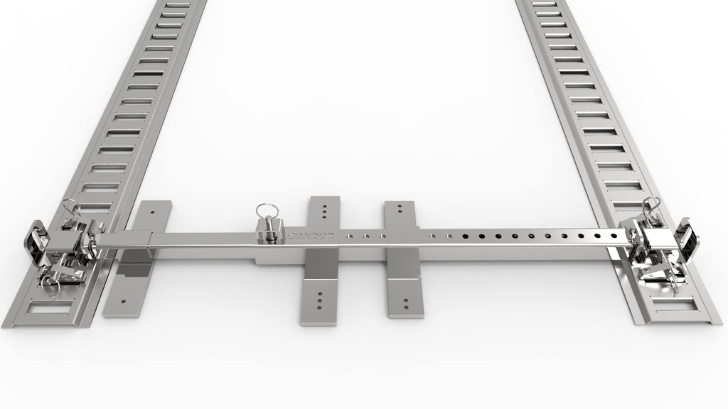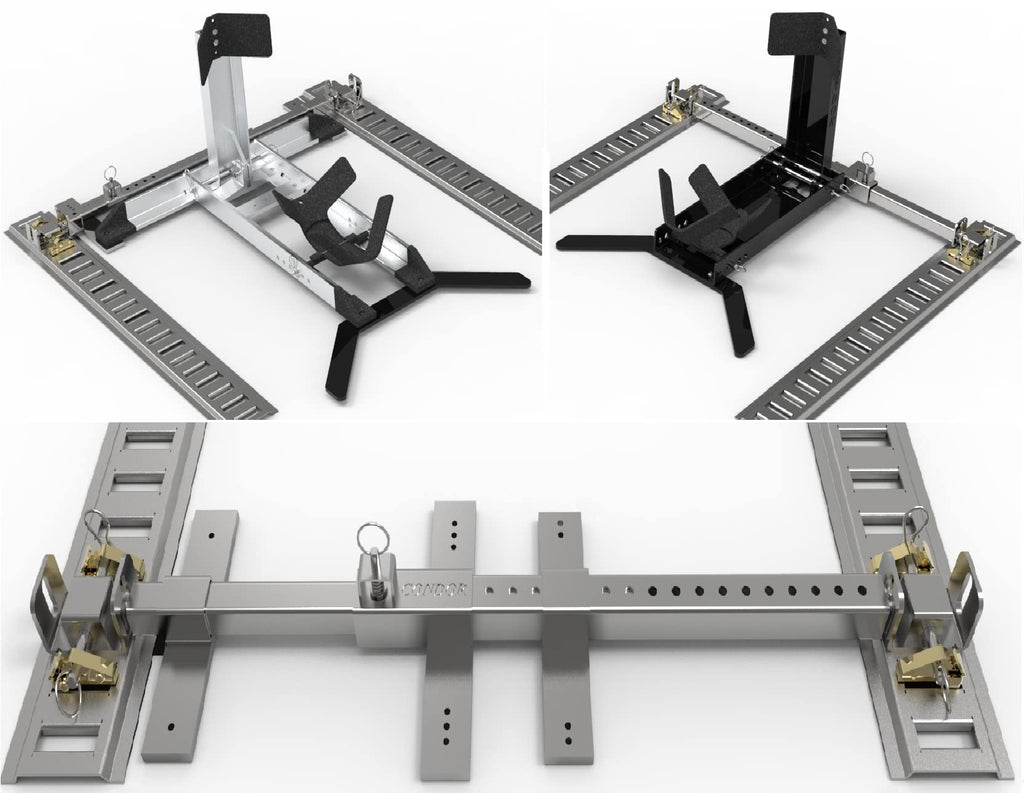 Details: The Universal E-Track Adaptor Kit (UNIV-E TRACK) is designed to be used with either a Condor Pit-Stop/Trailer-Stop, (PS-1500) the CONDOR Trailer-Only model (SC-2000), the CONDOR Scooter Chock (SCC-4000) and the Condor Chopper Chock (CHCK-1500). The kit allows our chocks to quickly and securely attach to the E-Track on any trailer platform, whether the E-Track is above the floor, recessed, or flush-mounted. Now you can adjust the position of the chock anywhere along the E-Track for maximum flexibility in positioning a motorcycle, and the chock can be adjusted side-to-side between 27" and 43" wide.