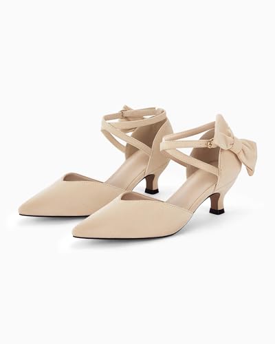 - Trendy Design: Super cute kitten heels for women features classic pointed toe, v cutout front details, side bow for a chic look, 2inch low heel dress shoes