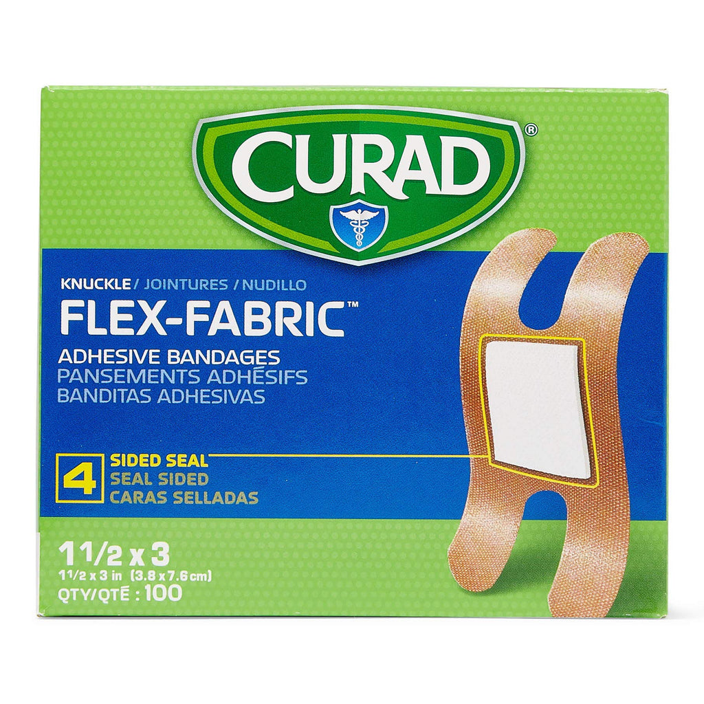 Curad Flex-Fabric adhesive bandages are woven to allow them to stretch and conform to the wound. Material naturally breathes. Features even adhesion and a non-adherent island pad.