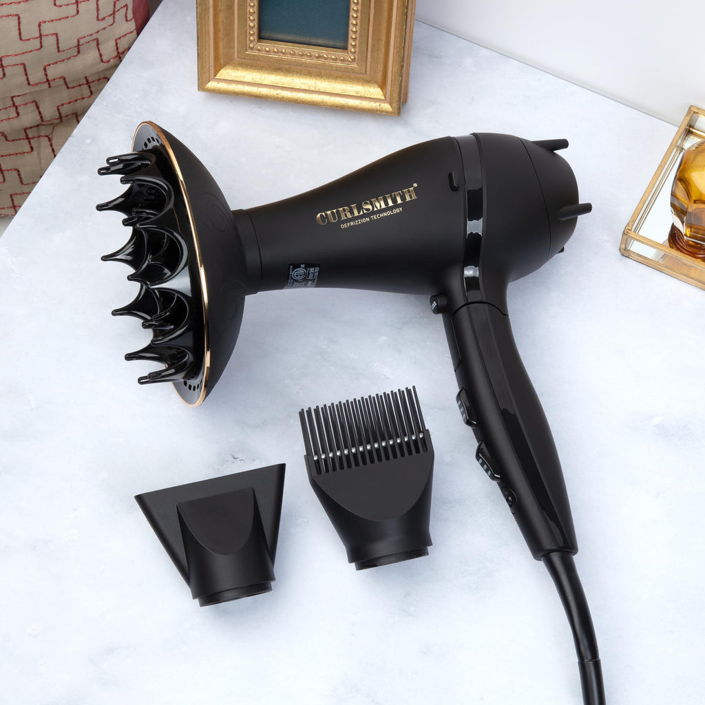 - DEFRIZZION DRYER TRAVEL EDITION - Introducing our travel-friendly, compact hair dryer designed specifically with all types of curls, coils or waves in mind. With its variable heat and speed settings, sustained cool setting and large diffuser attachment, this dryer provides efficient and gentle drying while enhancing your natural curls.