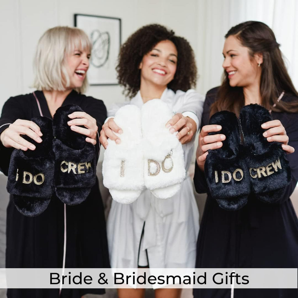 - GREAT GIFT: Matching bridal slippers are the ideal gift for popping the bridesmaid question and spicing up bachelorette weekends. Surprise the lucky lady in your life for their engagement, bridal shower, or simply because they deserve pampering!