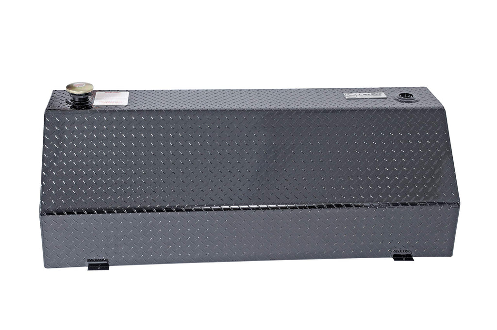 Details: Dee Zee Transfer Tanks - A safe and convenient means for transporting non-flammable liquids. Constructed of heavy gauge Brite-Tread aluminum. Black powder coat finish. Radius curve design eliminates key weld pressure points. Tanks feature stability baffles, lockable cap, 3/8" drainage plug, and venting coupler. Tanks are intended for private use (non-commercial). Not designed for use as an auxiliary fuel system. Not for use with gasoline. Does not meet title 49 of the United Stated Federal Registry.