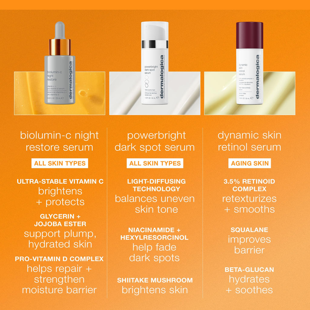 - Overnight Renewal Serum: Wake up to visibly refreshed skin with our BioLumin-C Night Restore, a hydrating facial serum that delivers overnight radiance and deep moisture repair.
