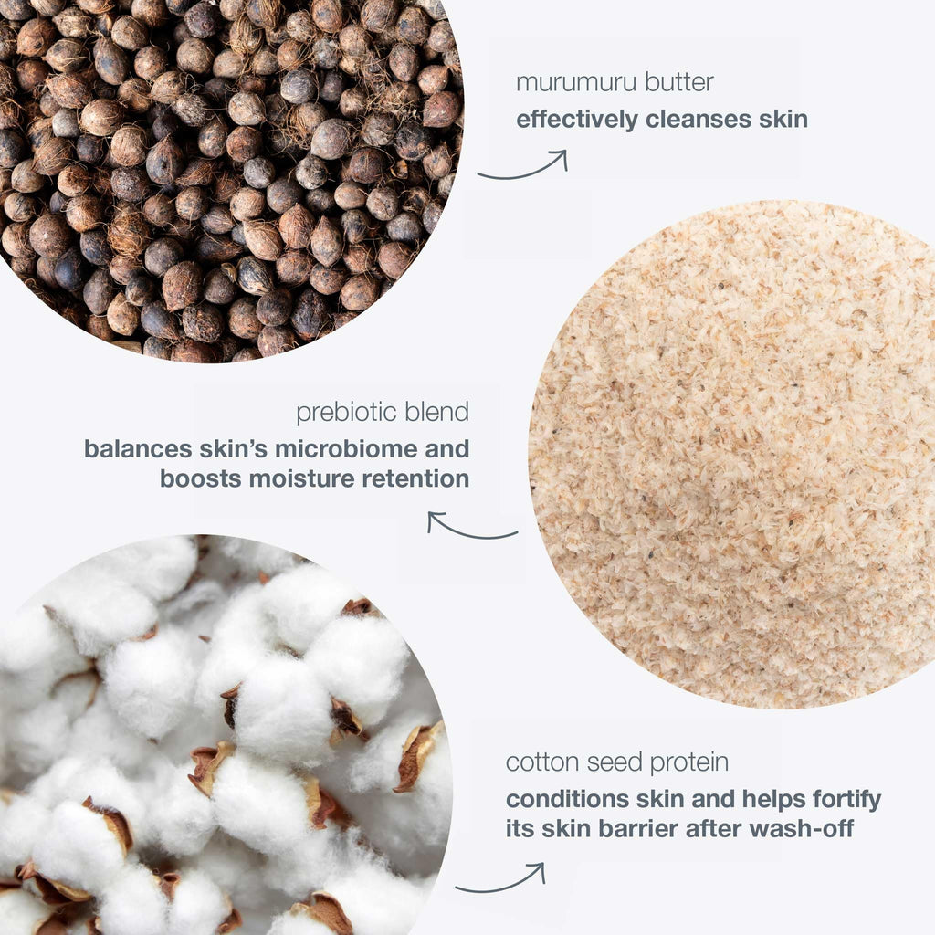 - Microbiome Balance + Deep Clean: A blend of prebiotics and micellar Murumuru Butter acts like a gentle cleansing oil to attract makeup and debris while supporting your skin’s natural balance.