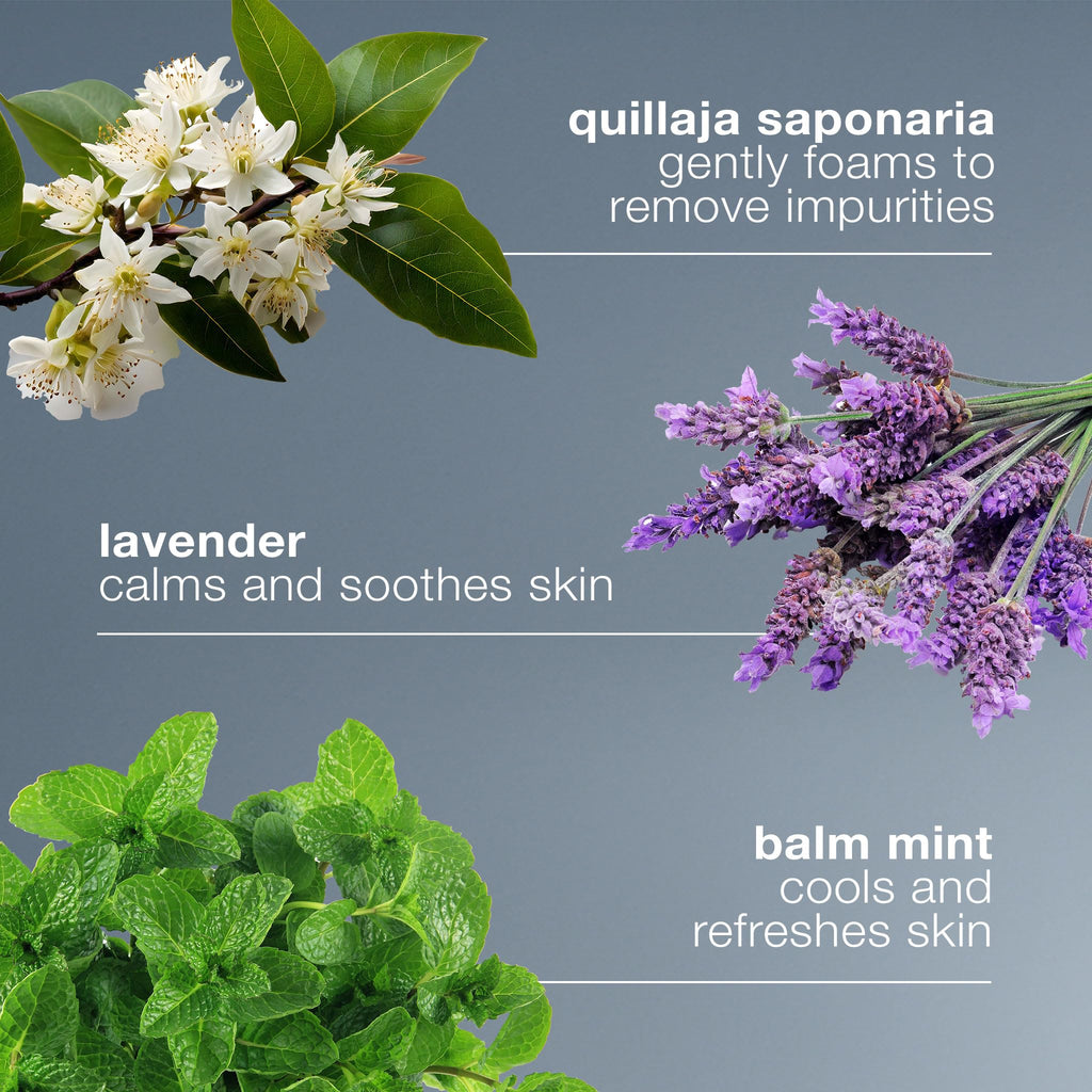 - Calming agents help soothe and purify skin
