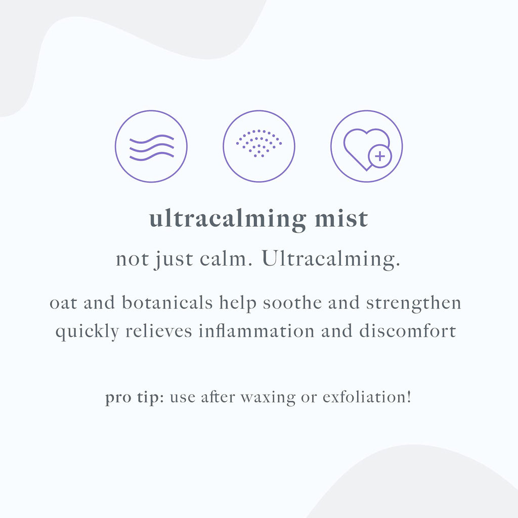 - Instant Calming Mist: Soothe and hydrate sensitive skin with our ultracalming mist. This lightweight facial spray quickly absorbs to relieve redness and irritation.