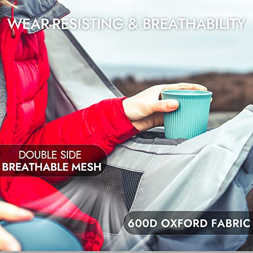 - Compact, Portable And Easy To Fold UP: This camp chair for adults can be easily folded into a bundle and placed in the carry bag in just a few seconds, making it highly portable and compact. With a folded size of 37"x 11", it saves space and is convenient to carry using the widened shoulder strap on the frame. Weighing only 12.8 lbs, this chair is ideal for picnics, camping, fishing, beach trips, sports events, and more.