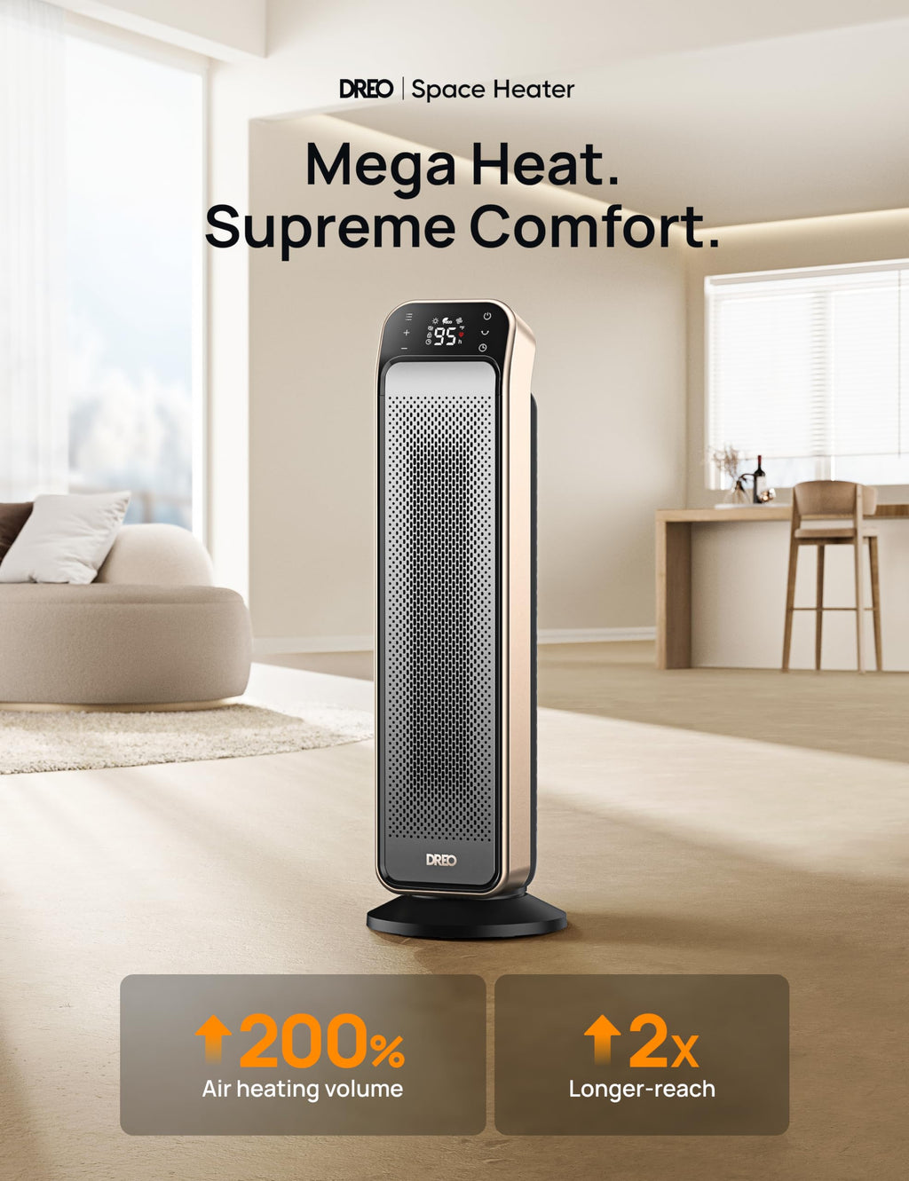 - The Ultimate Heating Experience: Dreo's upgraded 25" ceramic space heater brings 11.5 ft/s fast heat thanks to its new hyperamics thermal design, while the extended impeller doubles the heat range making it the ideal space heater for large rooms and warmer winters.