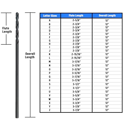 Details: Drill America DWDA/C Series High-Speed Steel drill bit is manufactured to National Aerospace Standard 907. 135 split point is self-centering and reduces thrust. Ideal for drilling in mild steels where extra length for reach is required. They have a black oxide surface treatment that is abrasion resistant, reduces chip welding and improves chip flow.