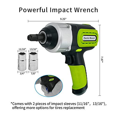 - Reliable Impact Wrench: Our electric car jack kit with impact wrench effortlessly removes nuts from car wheels. High torque, efficient, and Ergonomic, this tool features four different socket sizes, adapting to various vehicles. Say goodbye to manual labor and embrace the convenience!