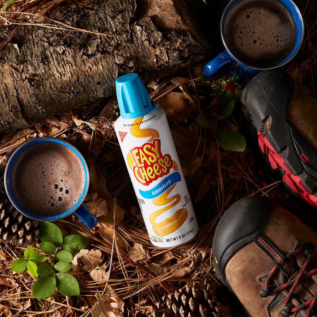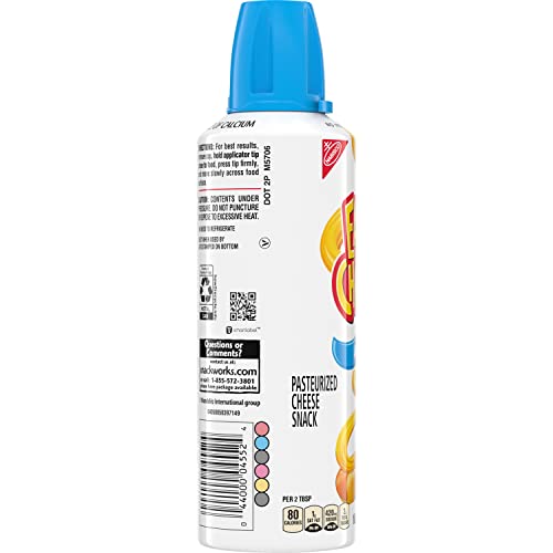 Details: Easy Cheese American Cheese Snack has the delicious taste of American cheese in a fun, spreadable form. This spray cheese is pasteurized and requires no refrigeration, making it a convenient, go anywhere snack. Made from milk, whey, and real cheese culture, Easy Cheese spread is an excellent source of calcium. Use this cheese to create designs on crackers or pretzels to make snacking more fun or top tortilla chips with this spray cheese for instant nachos. This bulk Easy Cheese comes in 12 convenient 8 ounce cans that store easily in pantries.