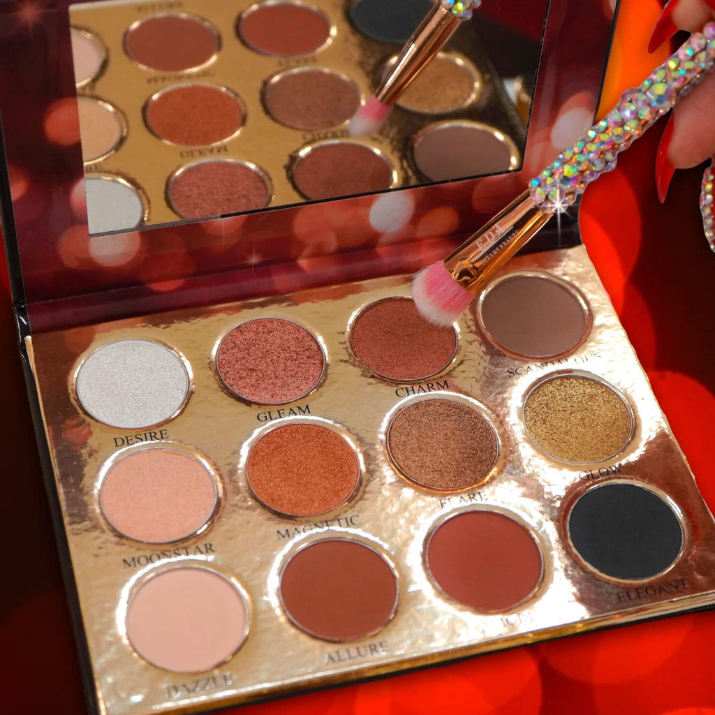 - Featuring 12 highly pigmented shades in a mix of metallic shimmer and matte finishes, Luxe Exotic Eyeshadow Palette offers a versatile range of colors inspired by the mesmerizing hues of a sunset. From warm golden tones to fiery oranges and deep burgundies, this palette has everything you need to create breathtaking eye looks for any occasion. The palette also includes a rich black shade that is perfect for adding depth and drama to your eye looks. Whether you want to create a sultry smokey eye for a night out or a bold winged liner for a daytime look, this black shade has you covered.