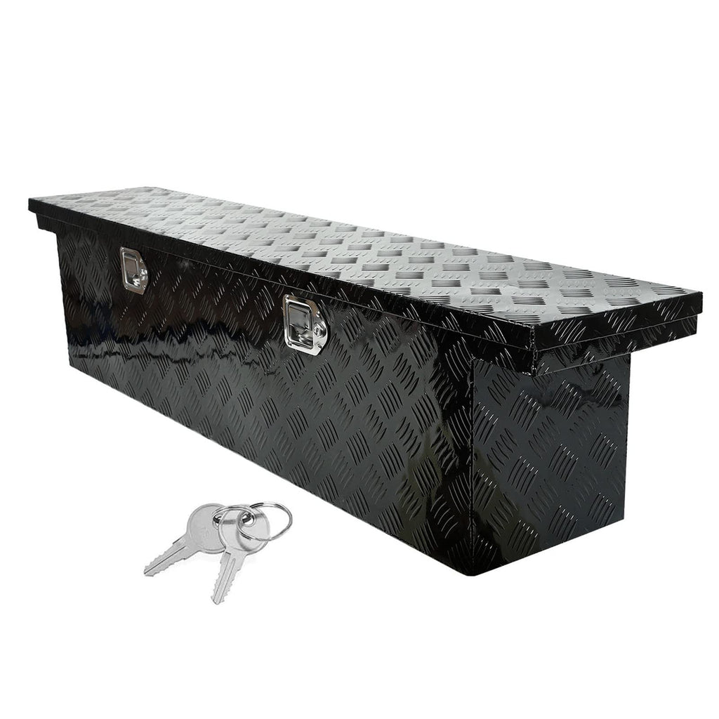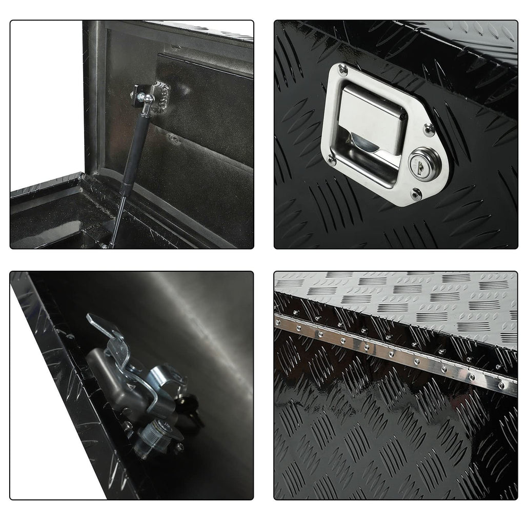 - Stainless steel security lock keeps your contents secure. Comes with keys and side handles that provide an easy grip.Durable aluminum construction with a diamond tread pattern and polished finish resists corrosion and offers several years of long-lasting use. Hand welded seams provide extra strength and durability.